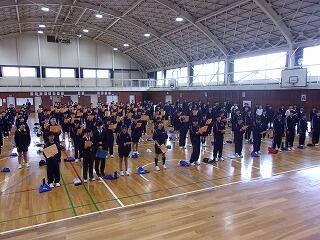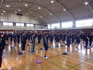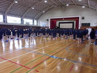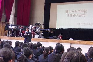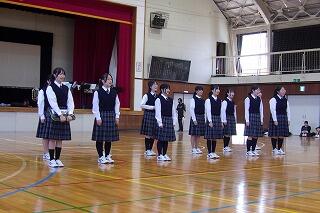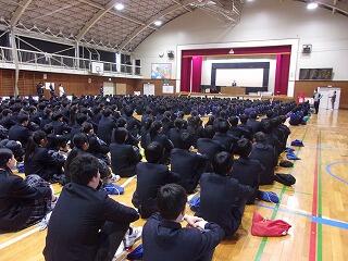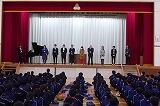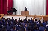 | 伝統の1つでもある合唱を上級生から教わる新入生 | 2.3年生が校歌を歌い、それを新入生は聴いています |