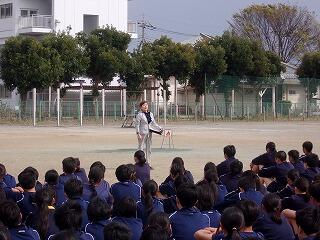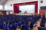 | 校長先生から「3:45早いです」とお話し。 | 「おかしもち」のお話も校長先生から講評のなかでいただきました。 |