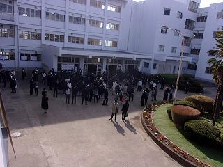 | 早朝、式場の様子を撮影しました。 | 新入生とその保護者が張り出し名簿を見ています。 |