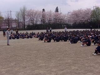 | 転入職員の紹介がありました。 | 生徒指導主任が新学期の心得について話をしました。 |