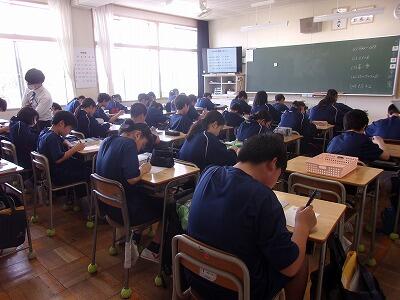 なぜ生徒の机が後ろ向きなのか、教室に入ってわかりました。 |