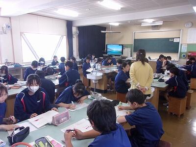 | 新入生は歌詞カードを持っています | 音楽の授業でおこなっている基礎練習も見せました |