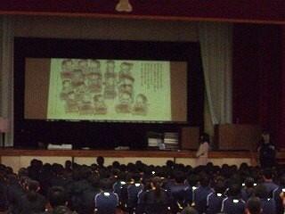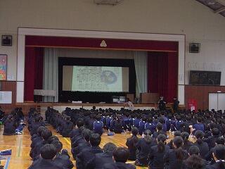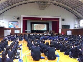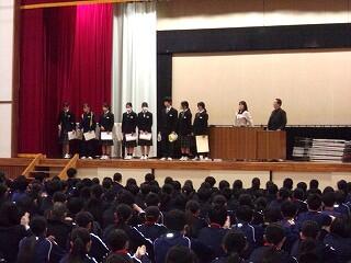 | 生徒会本部役員が三送会のテーマを発表しました。 | 保健安全委員会が、学校保健委員会の様子を発表。 |